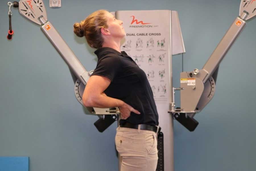 - If you experience low back pain or discomfort when extending back, only extend back until you “touch discomfort.”