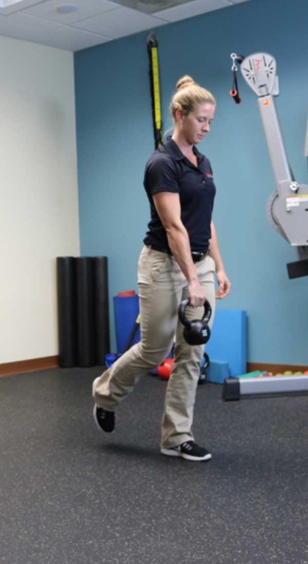 - Begin by holding a dumbbell or kettlebell in one arm by your side.